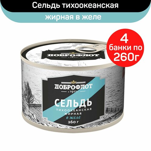 Консервы рыбные "Доброфлот" Сельдь тихоокеанская жирная в желе, 4 шт по 260 г