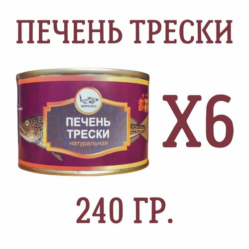 Печень трески натуральная морозко, 240 гр, 6 шт.
