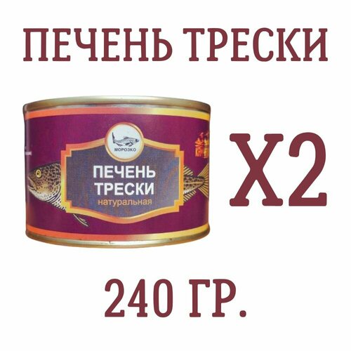 Печень трески натуральная морозко, 240 гр, 2 шт.