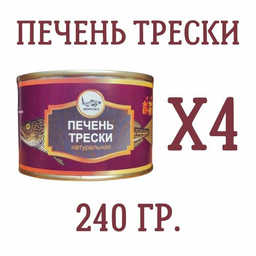 Печень трески натуральная морозко, 240 гр, 4 шт.
