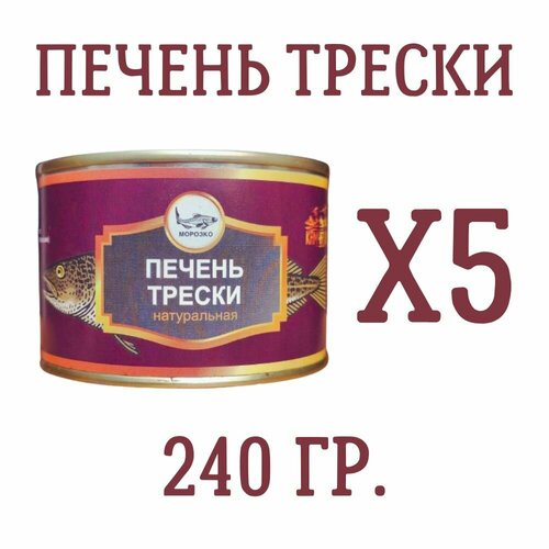 Печень трески натуральная морозко, 240 гр, 5 шт.