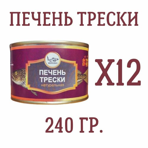 Печень трески натуральная морозко, 240 гр, 12 шт.