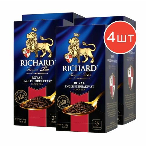 Чай черный терпкий "Richard English Breakfast" 25 пакетиков 4 упаковки