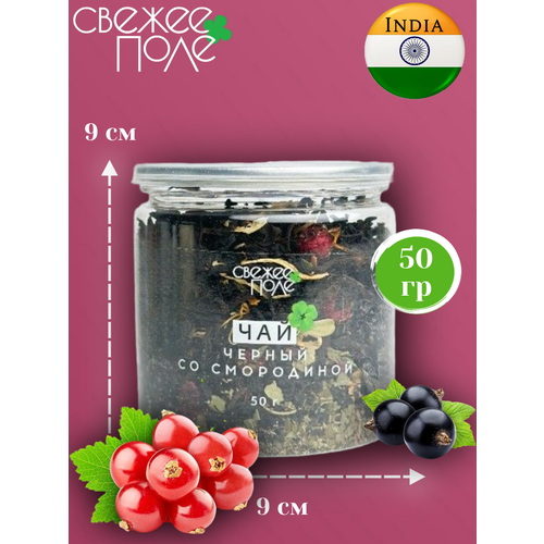Чай черный со смородиной, натуральный, специи и приправы в банке Свежее Поле 50 гр