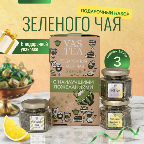 Чайный набор Любимый чай, ассорти, зеленый листовой весовой чай, 3 вкуса х 200 мл