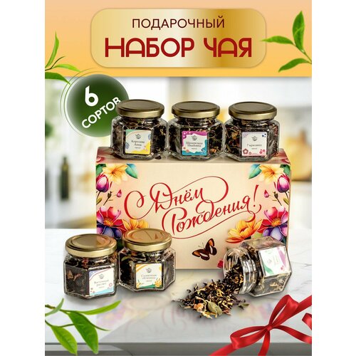 Чайный набор "Бабочки С Днём Рождения" 6 вкусов ассорти из черного и зеленого чая