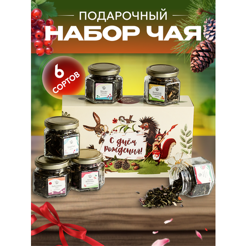 Чайный набор "Ежик С Днём Рождения" 6 вкусов ассорти из черного и зеленого чая