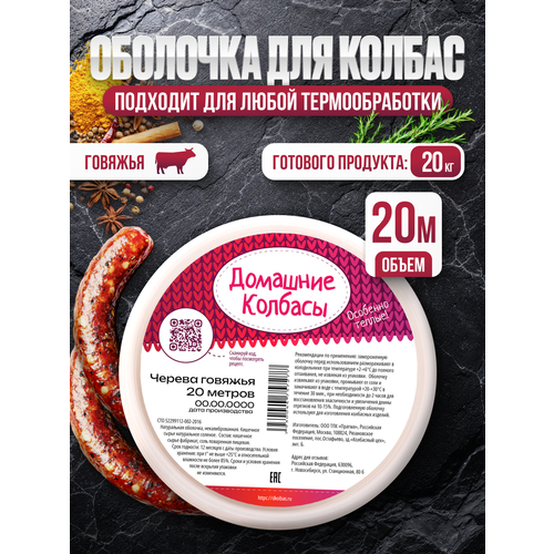 Черева говяжьи Домашние Колбасы, натуральная оболочка, длина 20 м