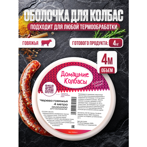 Черева говяжьи Домашние Колбасы, натуральная оболочка, длина 4 м