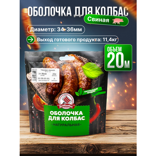 Черева свиная 34-36 категория А, длина 20 м, натуральная оболочка, Для Колбас
