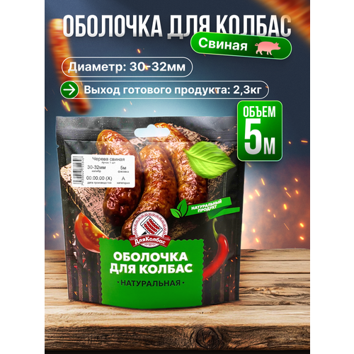 Черева свиная 30-32 категория А, длина 5м, натуральная оболочка, Для Колбас
