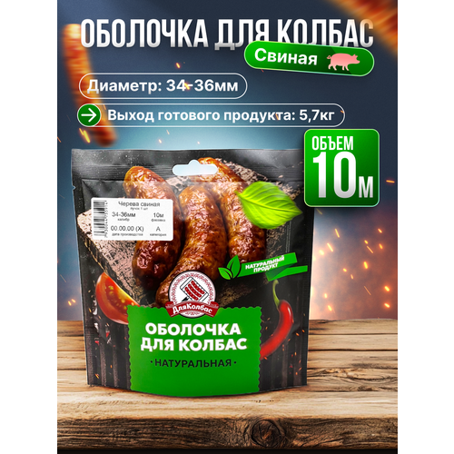 Черева свиная 34-36 категория А, длина 10м, натуральная оболочка, Для Колбас