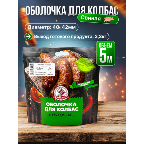 Черева свиная 40-42 категория А, длина 5м, натуральная оболочка, Для Колбас