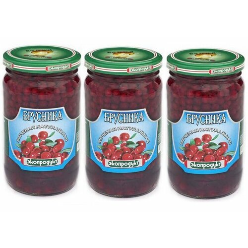 Брусника натуральная моченая "Экопродукт", 3 баночки по 340 грамм