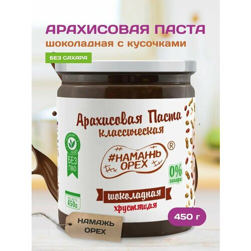 Шоколадная арахисовая паста Намажь орех с темным шоколадом и кусочками арахиса, без сахара, натуральная, ореховая, сладкая 450 гр