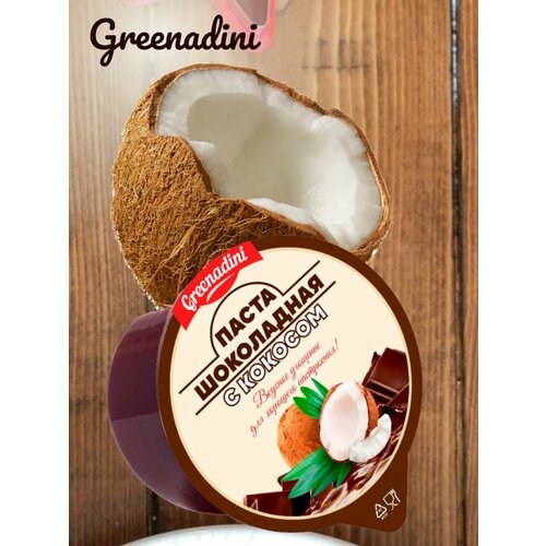 Шоколадная паста Greenadini, с кокосом и фундуком, 250г, пластиковая банка.