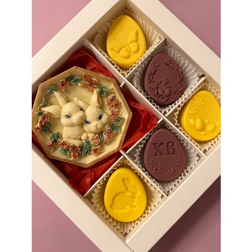 Шоколадные яйца "Набор №52- 5 яйц и кролики из белого шоколада"