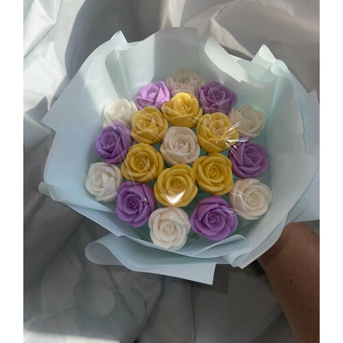 Шоколадные розы букет ShokoTrendy 19 шт белые фиолетовые желтые, 278 г