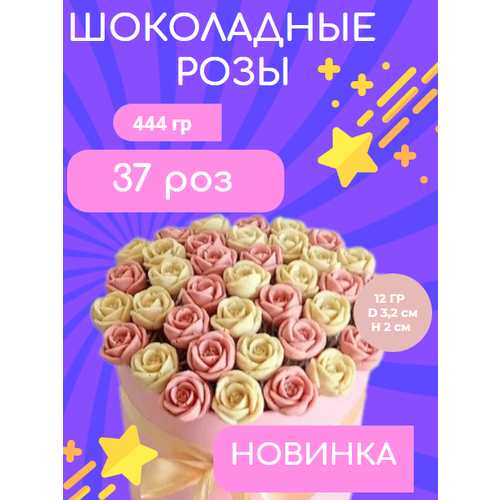 Шоколадный буке "ShokoTrends", 37 роз, ванильный вкус, в шляпной упаковке