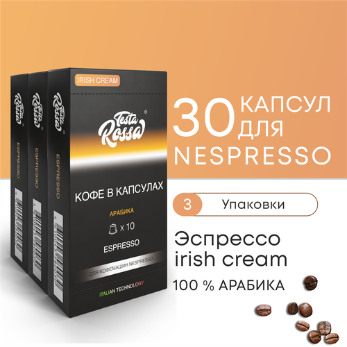 Эспрессо ирландский крем Арабика 100% — Капсулы Testa Rossa — 30 шт, IRISH CREAM, набор кофе в капсулах неспрессо, для кофемашины NESPRESSO