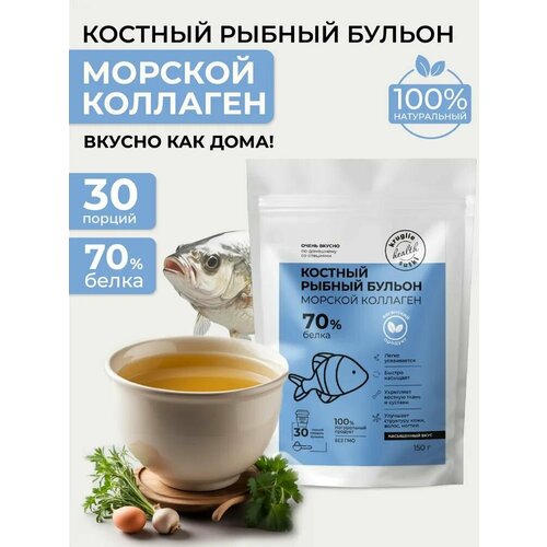 Бульон костный Рыбный 70%, Коллаген ТИП II для суставов, 30 порций, Вес 150 г, ВКУС И ПОЛЬЗА/ Круглые Сутки