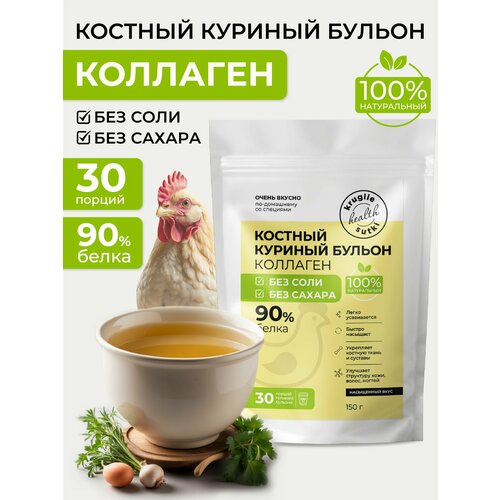 Бульон костный Куриный 90% БЕЗ СОЛИ, Коллаген для суставов, 30 порций, Вес 150 г, ВКУС И ПОЛЬЗА/ Круглые Сутки