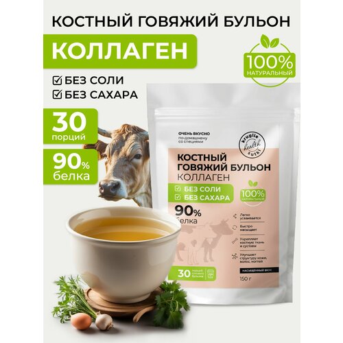 Бульон костный Говяжий 90% БЕЗ СОЛИ, Коллаген для суставов, 30 порций, Вес 150 г, ВКУС И ПОЛЬЗА/ Круглые Сутки