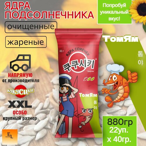 Ядра подсолнечника очищенные жареные со вкусом соуса Том Ям 40 грамм кукусики 22 пачки (880 грамм)