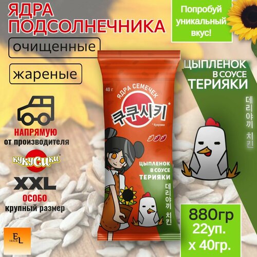 Ядра подсолнечника очищенные жареные со вкусом Цыпленок в соусе Терияки 40 грамм кукусики 22 пачки (880 грамм)