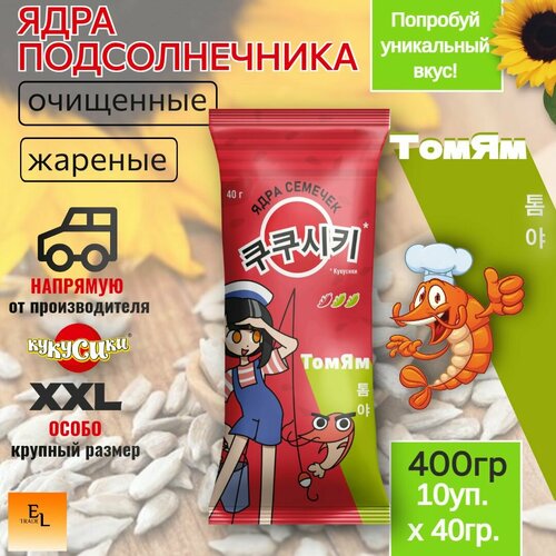 Ядра подсолнечника очищенные жареные со вкусом соуса Том Ям 40 грамм кукусики 10 пачек (400 грамм)