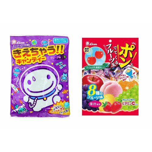 Японская карамель меняющая цвет со вкусом винограда и Ассорти 8 фруктовых вкусов (2 штуки в наборе), Lion Confectionery Co, Ltd, Япония