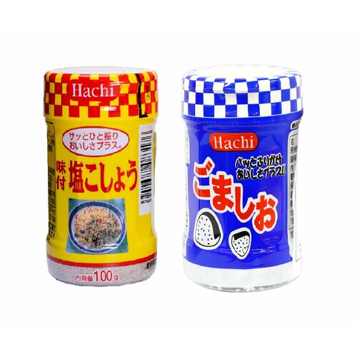 Японская приправа Hachi "Соль и перец" и "Соль и черный кунжут" (2 штуки в наборе) 145гр, Hachi-shokuhin Co, Ltd, Япония