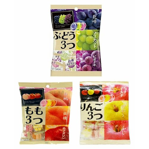 Японская леденцовая карамель "Яблочное, Виноградное и Персиковое ассорти, набор 9 вкусов!" (3 штуки в наборе), Pine Co, Ltd, Япония