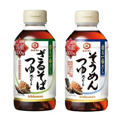 Японский соевый соус Kikkoman "Зару Соба" и "Ичибан Сомен", ароматные на основе бульона Даси премиальные (2 штуки в наборе) 1000 мл, Япония.