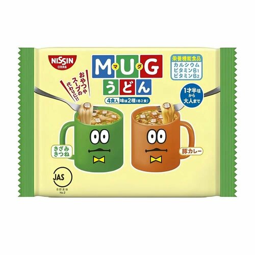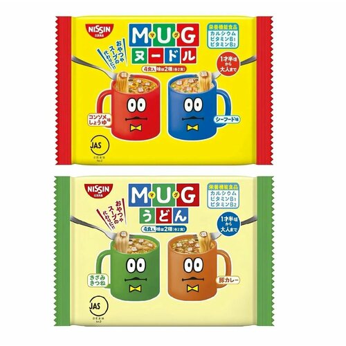 Японский рамен и удон Cup Noodle "Mug Noodle" со вкусом морепродуктов, карри, соевого соуса и рубленной кицунэ, 8 порций (2 штуки в наборе), 188г, Nissin, Япония
