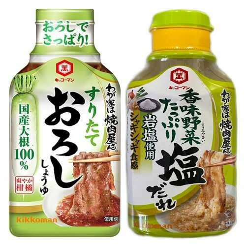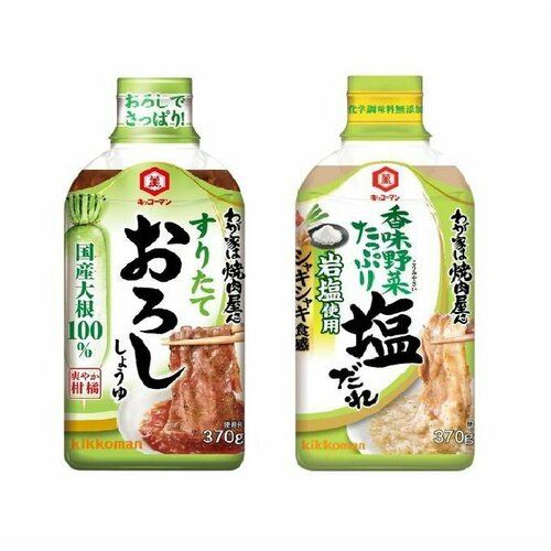 Японский соус Якинику с солью и ароматными овощами, с тёртым дайконом и соевым соусом (2 штуки в наборе), 385мл, Kikkoman.