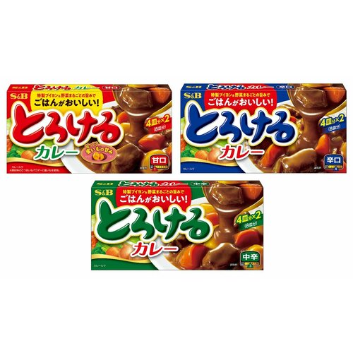 Японский соус карри пикантный, пикантно-острый и сладкий с мясом и овощами (3 штуки в наборе) 24 порции, S&B Foods Inc, Япония