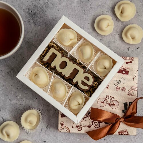 Шоколадные пельмени и шоколад, сладкий подарок папе на день рождения, юбилей, 23 февраля, подарок отцу