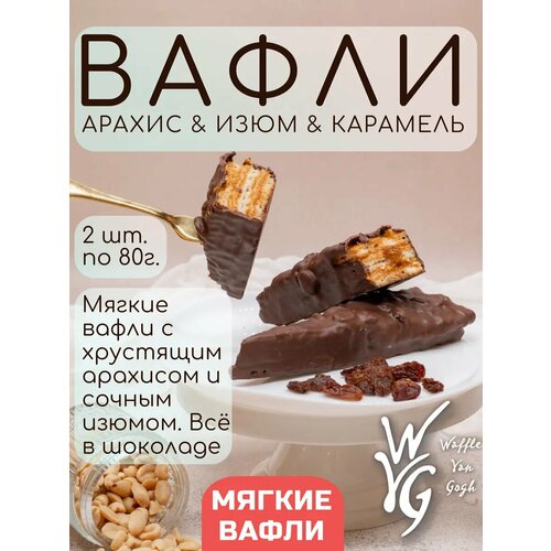 Вафли карамельные с арахисом и изюмом мягкие, 2 х 80 г