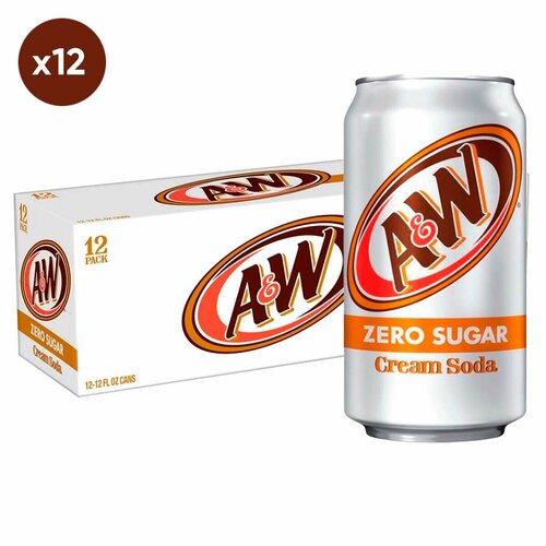 Газированный напиток A&W Cream Soda Zero со вкусом крем-сода без сахара (США), 355 мл (12 шт)