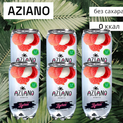 Газированный напиток Азиано Личи (Aziano Lychee) без сахара, 6 штук по 350 мл