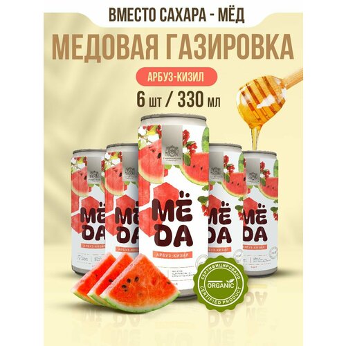 Газированный Натуральный Лимонад Мёда без сахара Арбуз-кизил 6штх0,33л