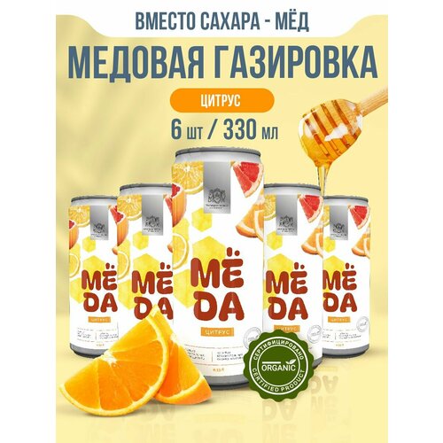 Газированный Натуральный Лимонад Мёда без сахара Цитрус 6штх0,33л