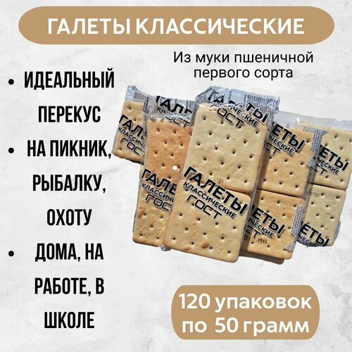 Галеты "Классические ГОСТ", 50 г в упаковке, комплект из 120 упаковок, 6 кг