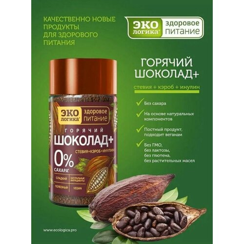 Горячий шоколад Экологика со стевией, кэробом и инулином, 125 гр ст