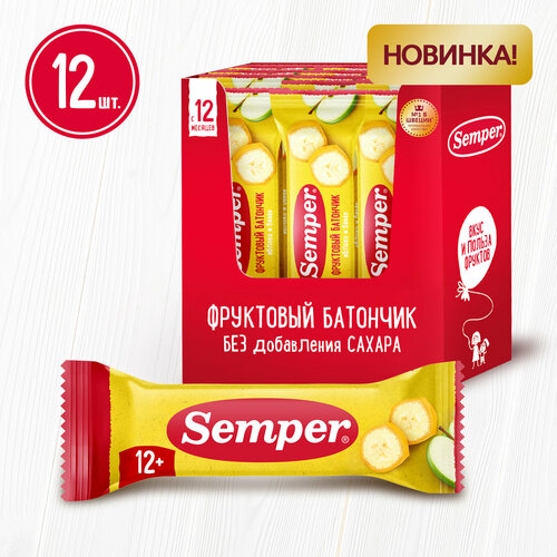 Детский фруктовый батончик Semper Яблоко-Банан без добавления сахара, с 12 месяцев, 15г х 12 шт