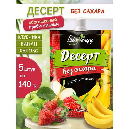 Десерт фруктовый "BioNergy" Клубника-банан-яблоко 140 гр (сава) 5 шт. в наборе