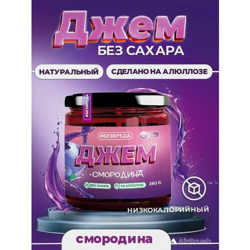 Джем "безвреда" из черной смородины без сахара 280 гр / Джем низкокалорийный черная смородина / Джем без сахара