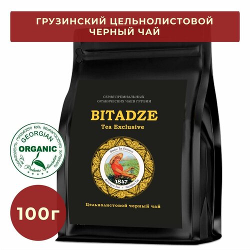 Грузинский цельнолистовой чёрный чай тонизирующий Bitadze фермерский премиальный, 100 г