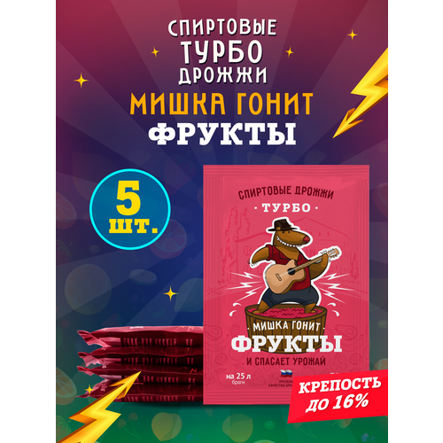 Дрожжи спиртовые турбо для самогона Мишка гонит "Фрукты", 70 г, 5 шт